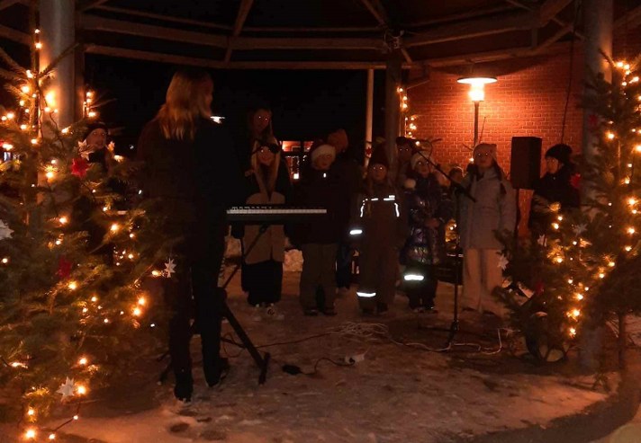 Bindslev Handel og Erhverv afholdt søndag eftermiddag et julearrangement for hele byen. De 120 fremmødte kunne synge med på tre julesalmer sammen med Bindslevkoret. Herefter sang Børnekoret fra Bindslev, hvor kirkens organist Alena spillede for.