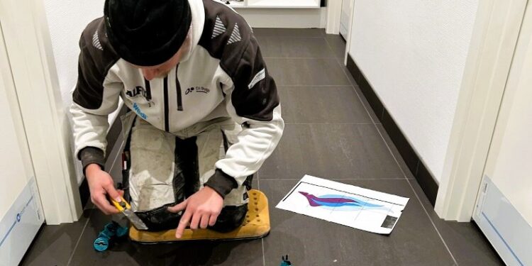 Logoet ligger nu fornemt indlejret på gulvet i de nye omklædningsfaciliteter hos Nord Energi.