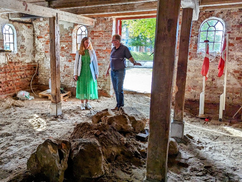 Villy Nielsen viser rundt og fortæller om renoveringen.