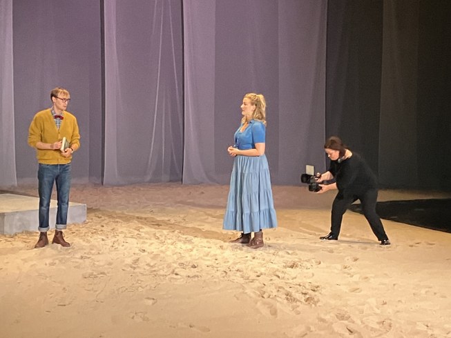 Tirsdag var pressen inviteret i Vendsyssel Teater i Hjørring med mulighed for at lave billeder og interviews til forestillingen ”Nordenfjords”, der har generalprøve torsdag, forpremiere fredag, urpremiere lørdag og spiller frem til den 7. oktober – hverdage klokken 19.30 og lørdage klokken 15.00