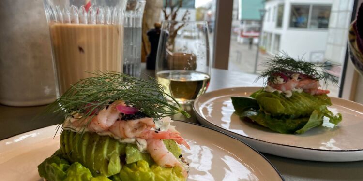 Pigerne var lidt forsigtige og foretrak et stykke hver med avokado, håndpillede rejer, syltede rødløg og dildmajonæse, mens herren her bestilte ræstur fiskur vendt i garnatálg, som er femeteret fisk med lammetalg, dampet spidshvidkål, dildmajonæse, syltede stikkelsbær og revet vesterhavsost. Det sidste var en i ordets aller bedste betydning særegen og delikat anretning, der virkelig gav gedigent smæk til både smagsløg og næse. Herligt!