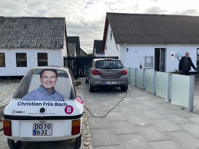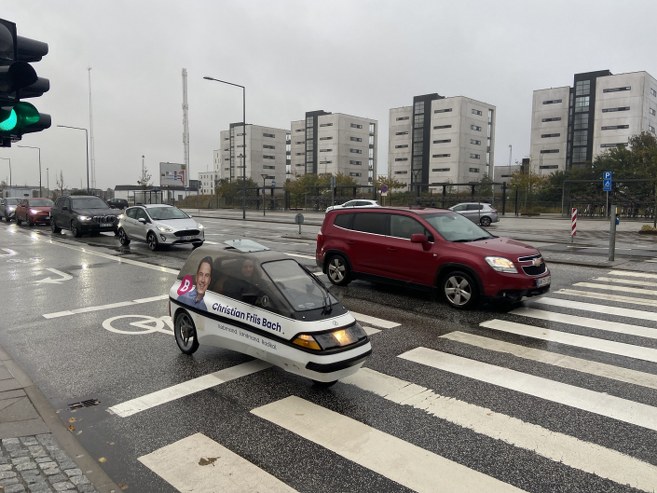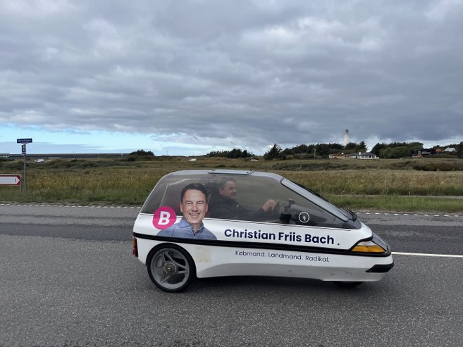 Det er i et roligt tempo, når folketingskandidat for Det Radikale Venstre, Christian Friis Bach, kommer kørende på sin vej rundt for at føre valgkamp.