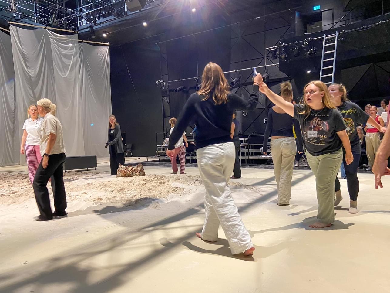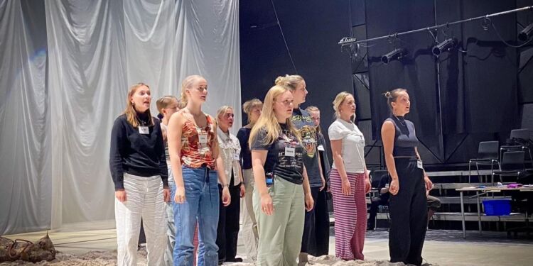 Der bliver for tiden øvet igen og igen, så alle kan være klar til forestillingen “Nordenfjords” på Vendsyssel Teater.