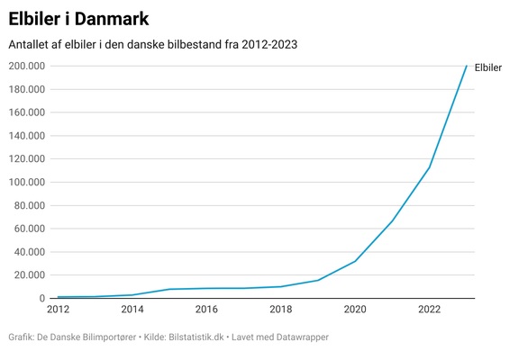 Danmark kunne skrive historie d. 12. oktober 2022, da elbilbestanden nåede 100.000. Det tog over 100 år at nå de første 100.000 elbiler i Danmark, men de næste 100.000 er kommet på lidt over ét år. I dag har den danske elbilbestand nået en ny milepæl på 200.000. Det betyder, at mere end 7 procent af den danske bilbestand nu udgøres af elektriske biler.