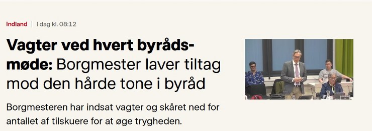 DR omtaler og skriver nemlig: I Hjørring Byråd er tonen blevet så hård, at to sikkerhedsvagter nu er til stede ved møderne, og antallet af tilskuerpladser er kraftigt reduceret. Se DR-artiklen om Hjørring Kommunes byråd.