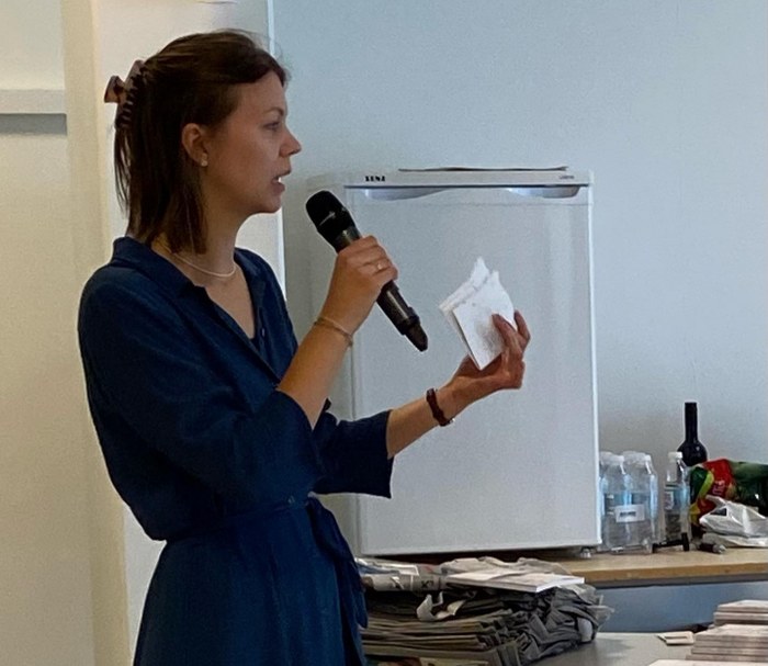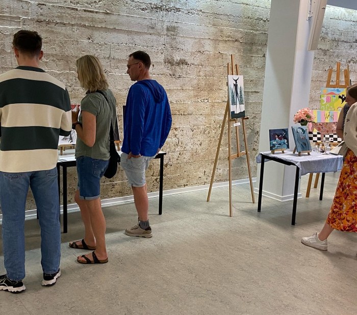 Relieffet er en gave til gymnasiet fra kommunens kunstudvalg, og formand Troels Bidstrup Hansen fortalte historien bag det nye værk. Billedkunstlærer Sarah Isaksen introducerede dernæst udstillingen af elevværker.