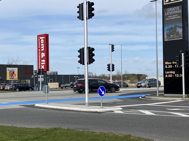 Lysreguleringen med forbindelse til flere store varehuse er etableret som en følge af øget aktivitet og mange biler i området, hvor der lige nu opføres et 3000 kvadratmeter stort varehus ved siden af Jem & Fix.