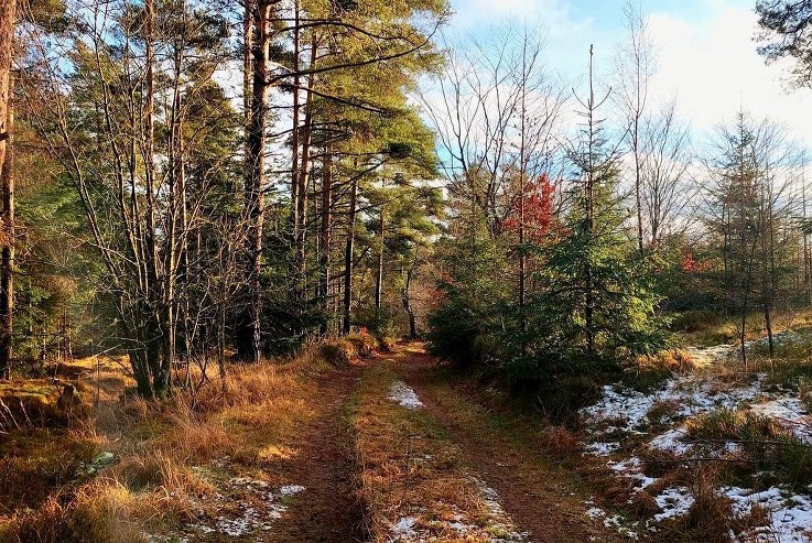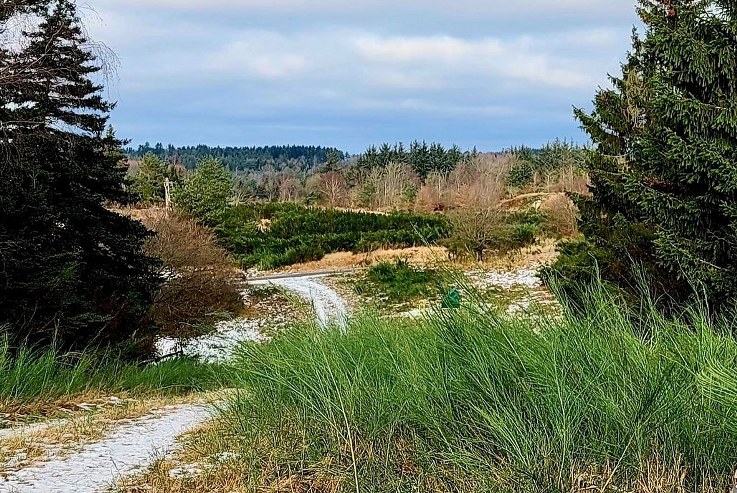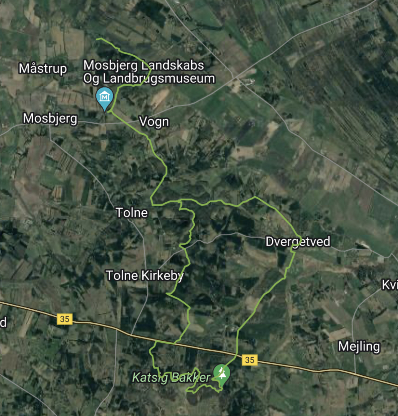 Vi er en gruppe på 4 som i dag d 8/4 gik 18 km ruten med udgangspunkt i Tolne Kirkeby, nedover Katsig Bakker og videre nordover mod Tolne Skovpavillon og så tilbage mod Blåhøj og Tolne Kirkeby.