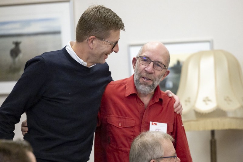 I BNI Hjørring tror de nemlig på at støtte hinanden – faktisk har de en sjov tradition: Hvis man har givet omsætning til et andet medlem for over 50.000 kroner, så er der krammer. Det har Hans Jørgen Jensen oplevet flere gange, blandt andet i samarbejde med Mikkel Grønning Vilsen, hvor de har udvekslet forretning for over 100.000 kr.