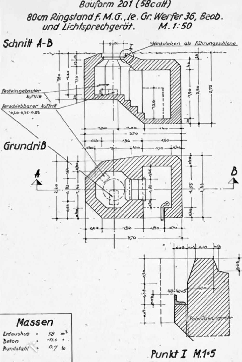 Bunkeren er en lille maskingevær/observations-bunker af typen “Bauform 58c / 201” og var faktisk den mindste tyske betonbunker i det tyske byggesystem, men ikke desto mindre en af de absolut mest benyttede bunkere til ydre-sikring af tyske anlæg og stillinger.