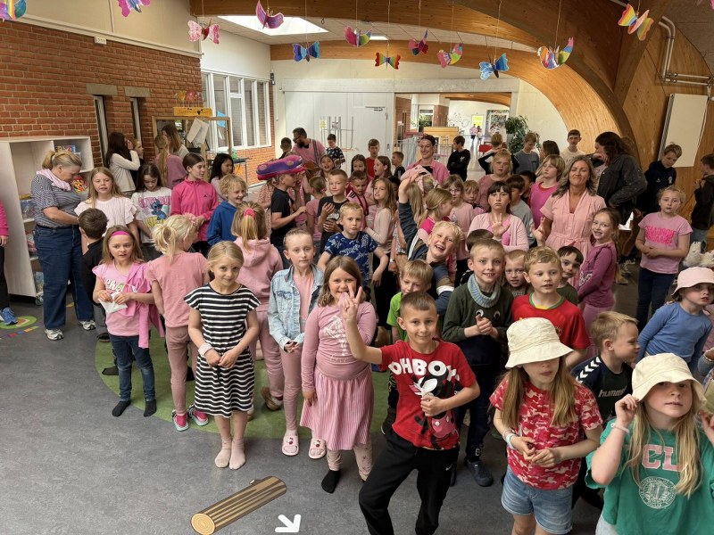 Hyldet blev han til gengæld på dagen med sange og himmelhøje hurraråb af en hærskare af børn og voksne i flere nuancer af pink.