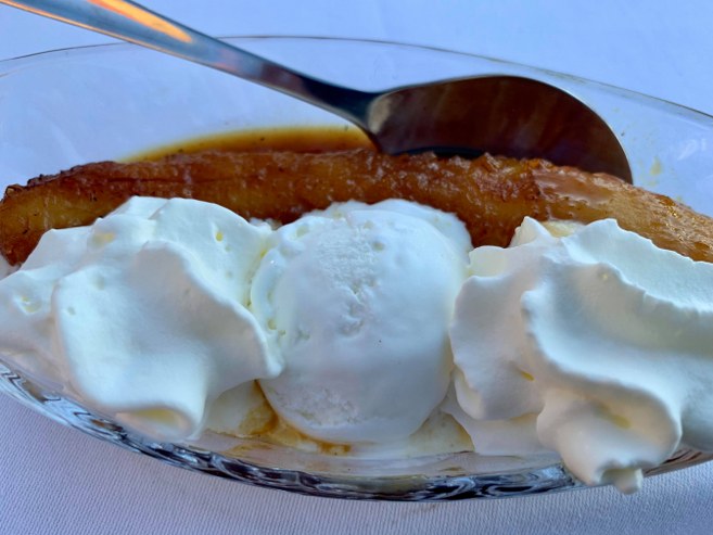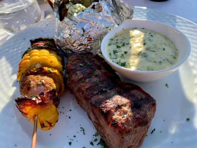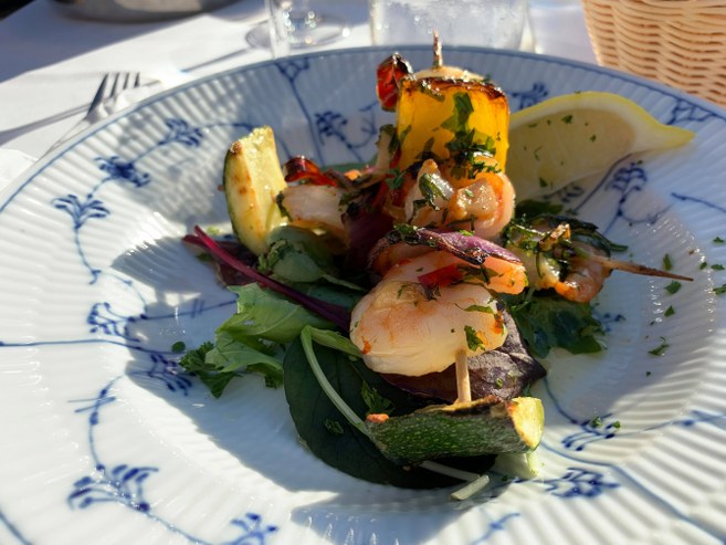 På det tidspunkt indtog mange i lighed med netavisens udsendte en lækker, lækker tre retters menu på terrassen ved Hirtshals Kro. Den stod på godt krydrede tigerrejer med hvidløg og chili, den møreste oksefilet med tilbehør og tilpas sød banana flambé.