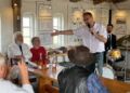 Det var da også en bevæget Peter Wendelboe, som efter de to taler greb mikrofonen og takkede ikke blot sønnike, men også svigerdatteren og børnebørnene, som havde båret over med deres mand og far, mens han fordybede sig i bog og udstilling, samt hustruen Dorthe og Hans Wendelboe Bøchers gudbror Nils Nordholm.