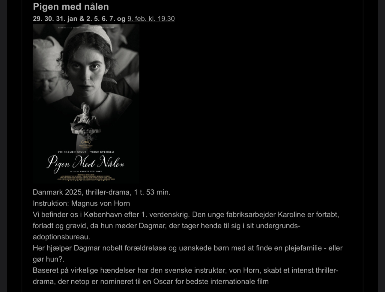 Netavisen anmelder senere filmen “Pigen med nålen”.