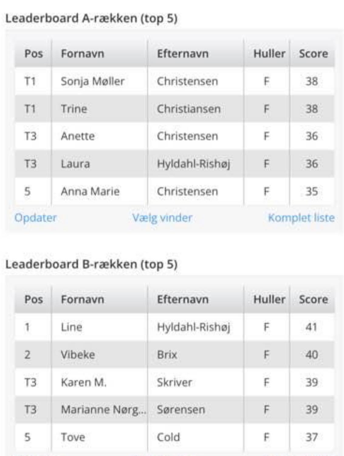 Kæmpe tillykke til alle præmievinderne og et ekstra stort tillykke til Gurli Holst, som lavede hole in one på hul 6 og dermed sikrede yderligere 25.000 til Kræftens Bekæmpelse.