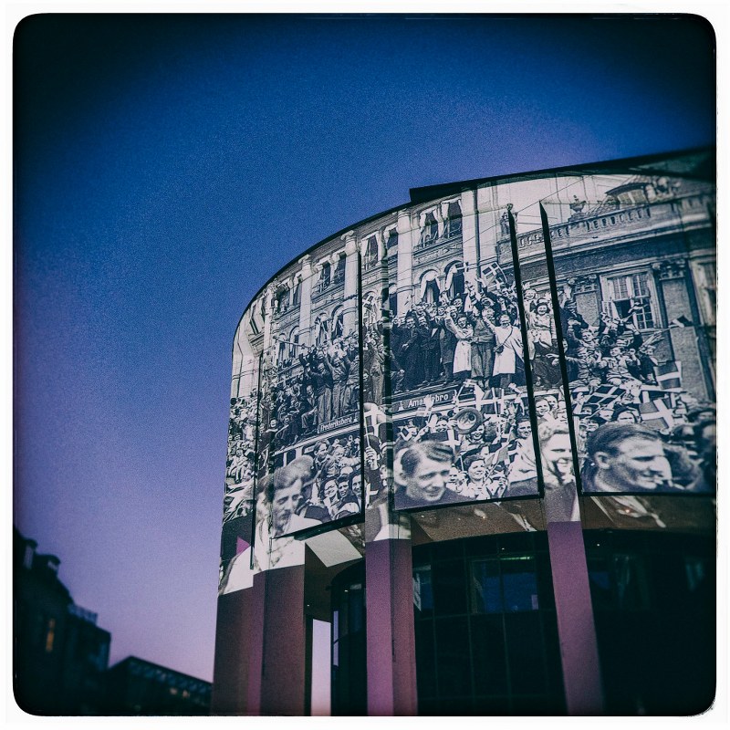 Billederne fra aftenen er små glimt fanget imellem PixlArts opgave med at projektere billeder på vinduerne til byrådssalen hos Hjørring Kommune.
