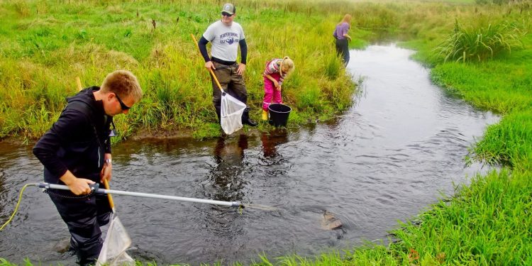 En god flok interesserede var ifølge ham mødt op ved Smidstrupgård (Smidstrupvej 464) for sammen at gå ned til et par af de nye slyngninger i åen og følge fiskeriet i det genskabte vandløb. Forventningen var til at tage og føle på, og alles øjne fulgte spændt fangstnettet, hver gang det blev løftet ud af vandet.