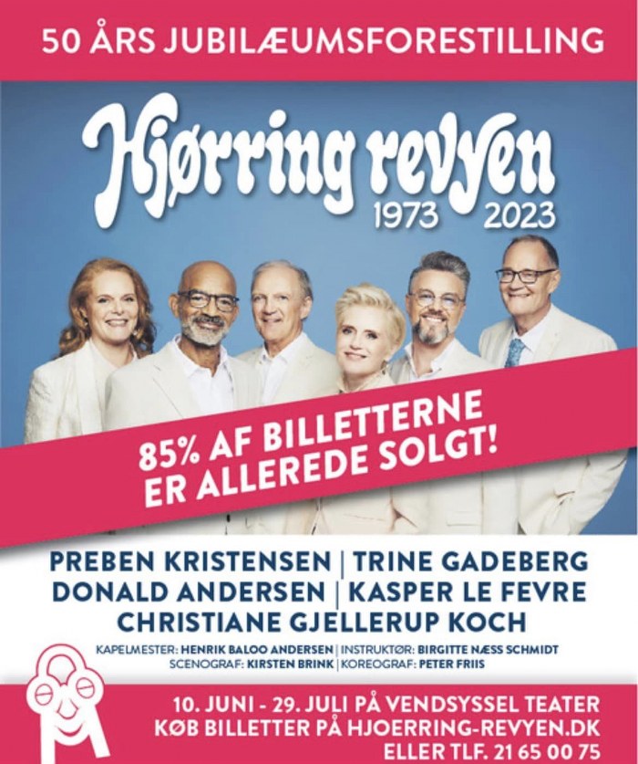 Hvis du endnu ikke har sikret dig billet, eller vil købe en jubilæumsbog, kan begge del sikres på Hjørring Revyens hjemmeside: www.hjoerring-revyen.dk