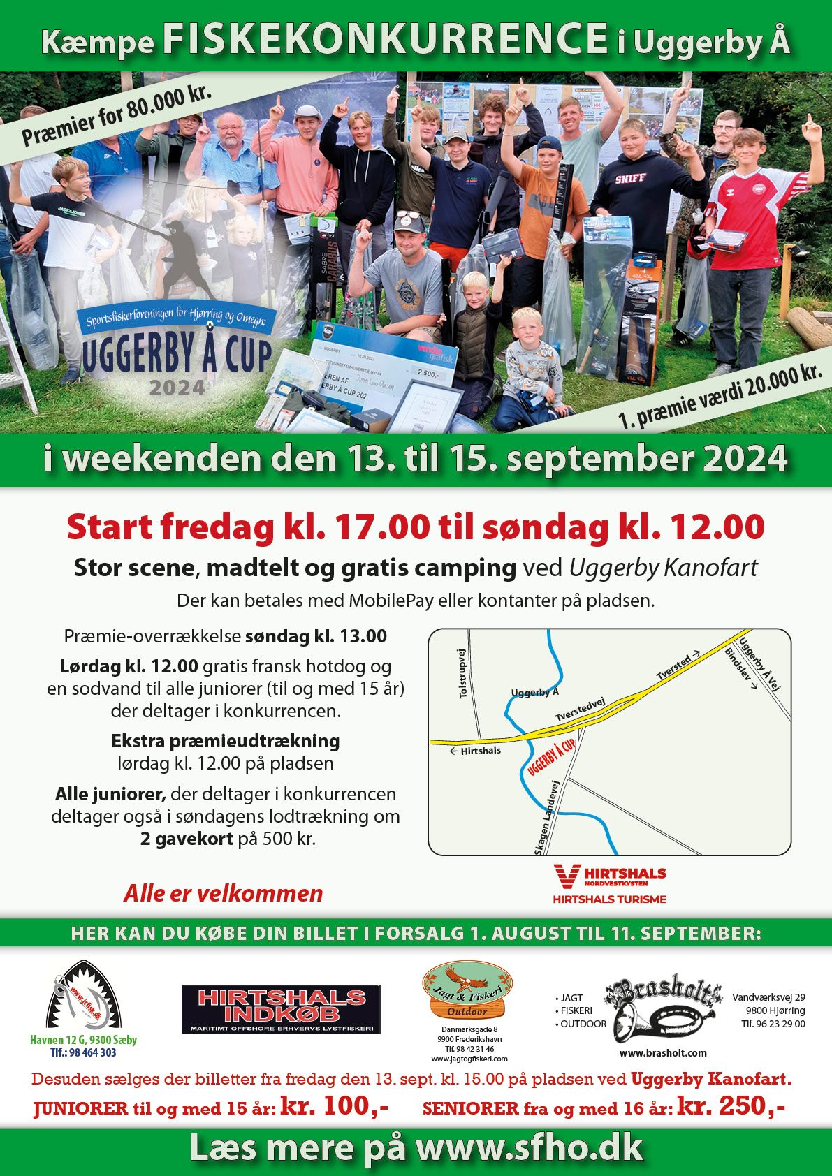 Uggerby Å Cup har igen i år base og udgangspunkt ved Uggerby Kanofart. Deltagerbevis kan også købes på pladsen. Nedenfor ses mere info om den store og traditionsrige fiskekonkurrence, der arrangeres af Sportsfiskerforeningen for Hjørring og Omegn.