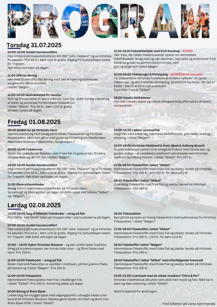 Se hele programmet for 2025 herunder eller find det og bestil billetter på hjemmesiden Hirtshals Fiskefestival.
