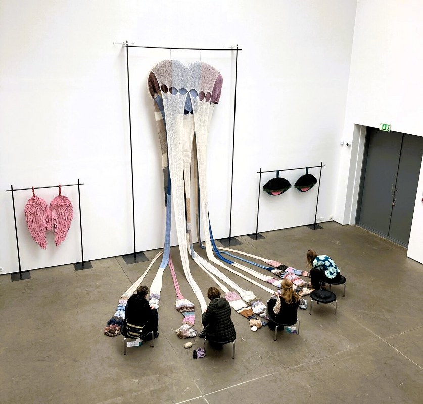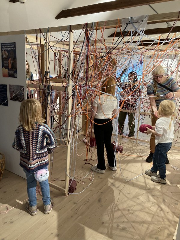 Udstillingen skiller sig ud ved at give gæsterne mulighed for selv at blive en del af den kunstneriske proces. I Trehøje Sal kan man strikke videre på Hannah Totickis monumentale værk, mens man på 2. sal kan interagere med Albert Reinholdts kube – her opfordres man til at kaste med garn og fingerstrikke, hvilket skaber en legende og deltagende atmosfære.