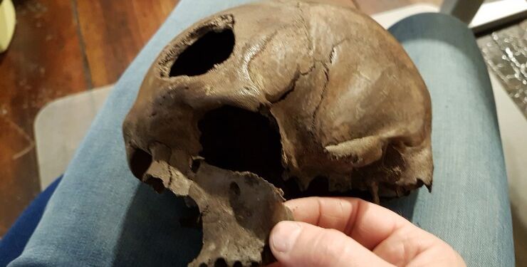 På fotoet arbejder Sidsel med at få et stykke af overkæben til at passe til resten af kraniet og det lykkes. Kraniet er ikke komplet. Det har fået en lidt hård medfart da det blev fundet.
