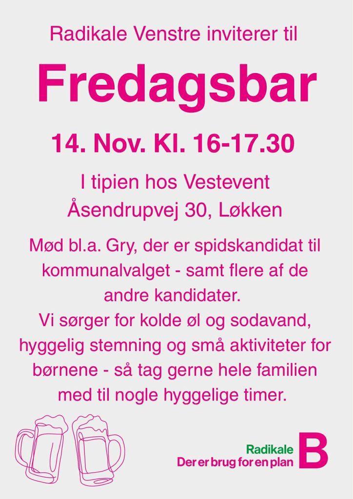 Gry Bruun Nielsen og Det Radikale Venstre inviterer til fredagsbar hos Vestevent i Løkken