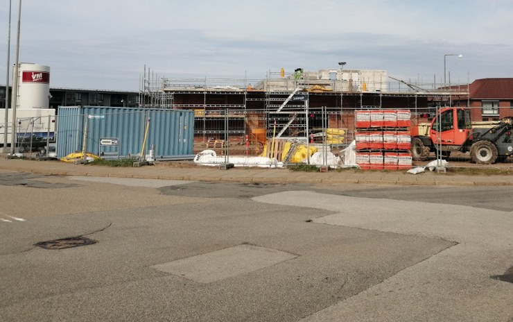 Det nye lægehus er ved at tage form, og det bliver tydeligere uge for uge, hvilke nye og fantastiske rammer, vi får i den nye lægepraksis i Hirtshals. For hver gang vi kommer forbi, glæder vi os endnu mere til, at vi og vores patienter vil få glæde af huset, siger praktiserende læge Flemming Pedersen.