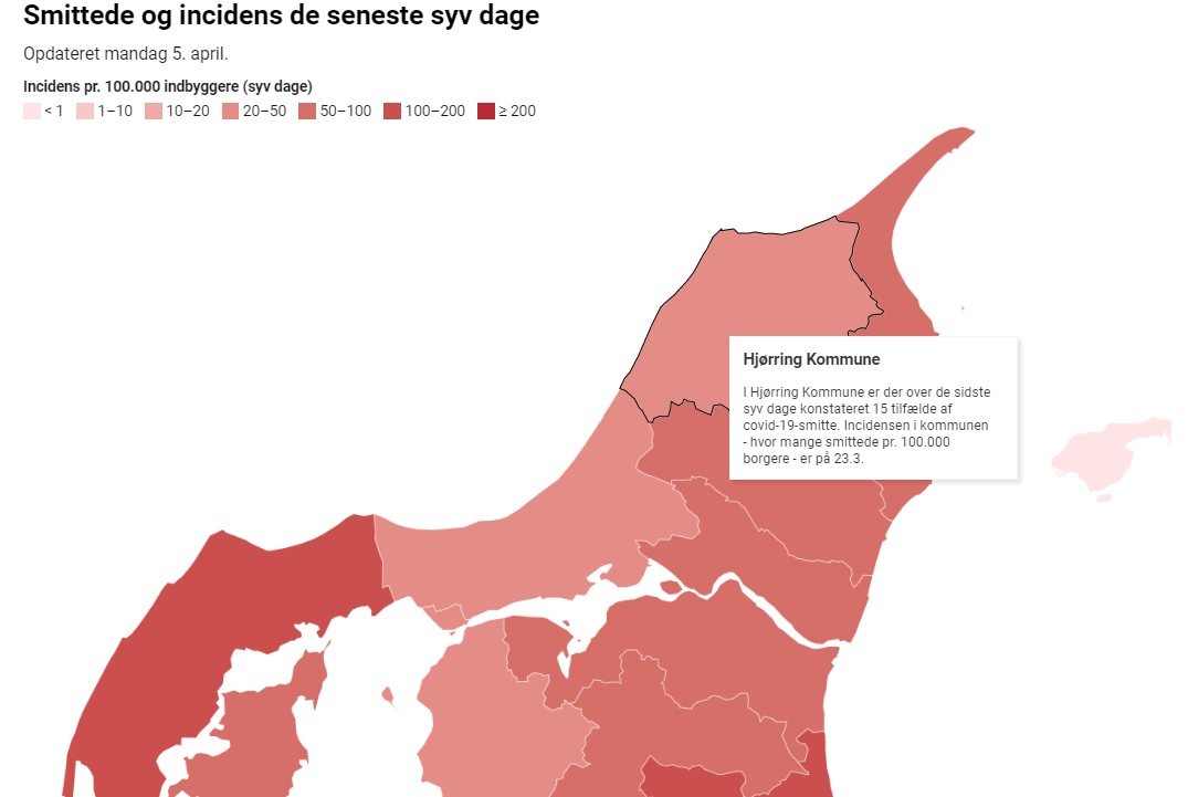 Dermed placerer den nordjyske kommune sig på en 7. plads på landsplan, viser dagens smittetal fra Statens Serum Institut. Incidenstallet er med bare 15 konstateret smittede på 7 dage på 23,3 i Hjørring Kommune.