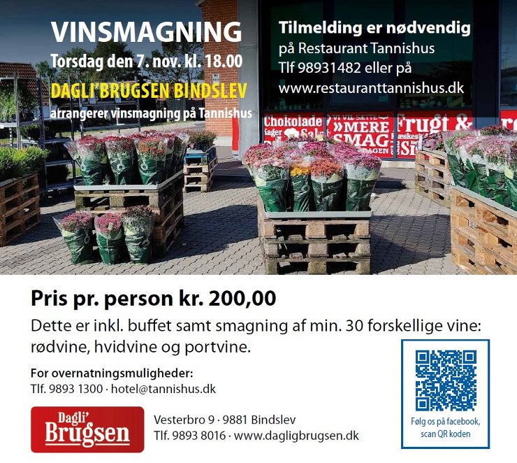 Dagli’Brugsen i Bindslev arrangerer vinsmag på Restaurant Tannishus torsdag den 7. november klokken 18.