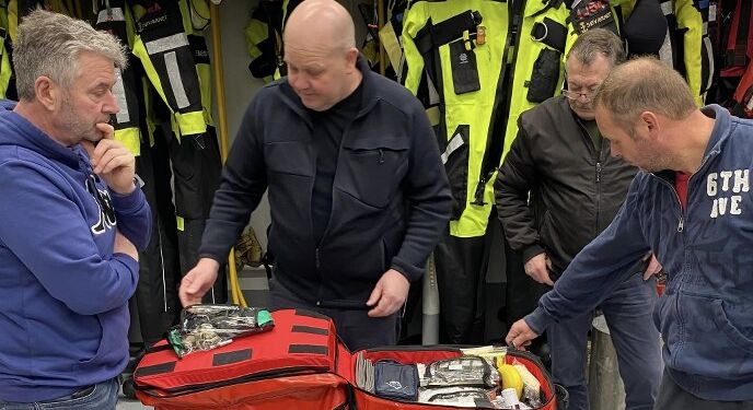 Denne lørdag var der igen øvelse, hvor mandskabet gennemgik de to skibe Margrethe Gaardbo og FRB14. Redningsstationen har nemlig meget grej til forskellige situationer på havet ombord på de to skibe.