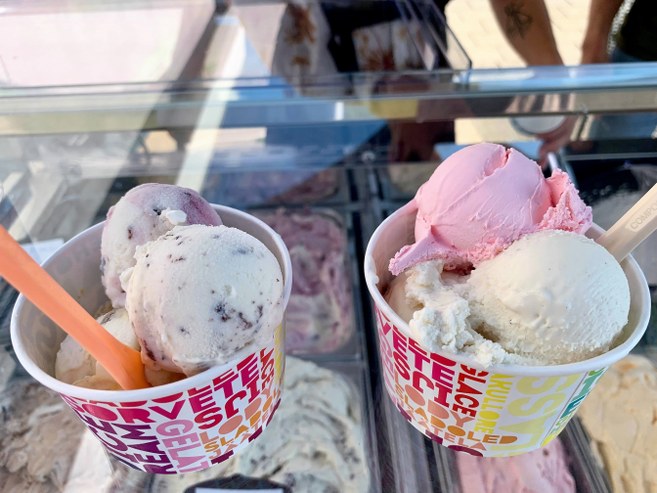 Isen er da også virkelig, virkelig ekstremt lækker, smagfuld og med den helt rigtige konsistens til en varm sommerdag, hvilket tillige gælder det søde guf.