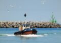 Denne smukke solskinsdag anløb imidlertid det nyindkøbte forsyningsfartøj Rita. Medarbejderne Gustav Øglend og Henning Hansen så umiddelbart ud til at blive glade for Rita, da fartøjet lagde til kaj ved Pier Øst.