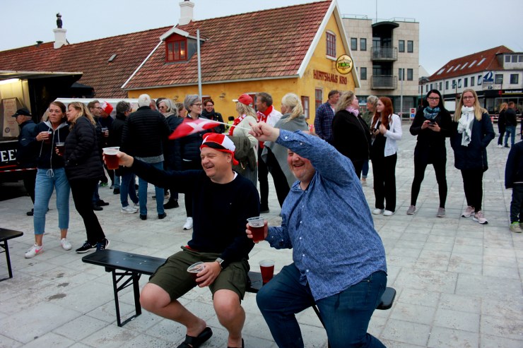 Stemningen blev ikke mindre god, da lokale No Good gik på scenen foran et ophængt Dannebrog. Der var måske noget efterårsagtigt over vejret, men der var i dén grad lysegrøn midsommerstemning på Den Grønne Plads.