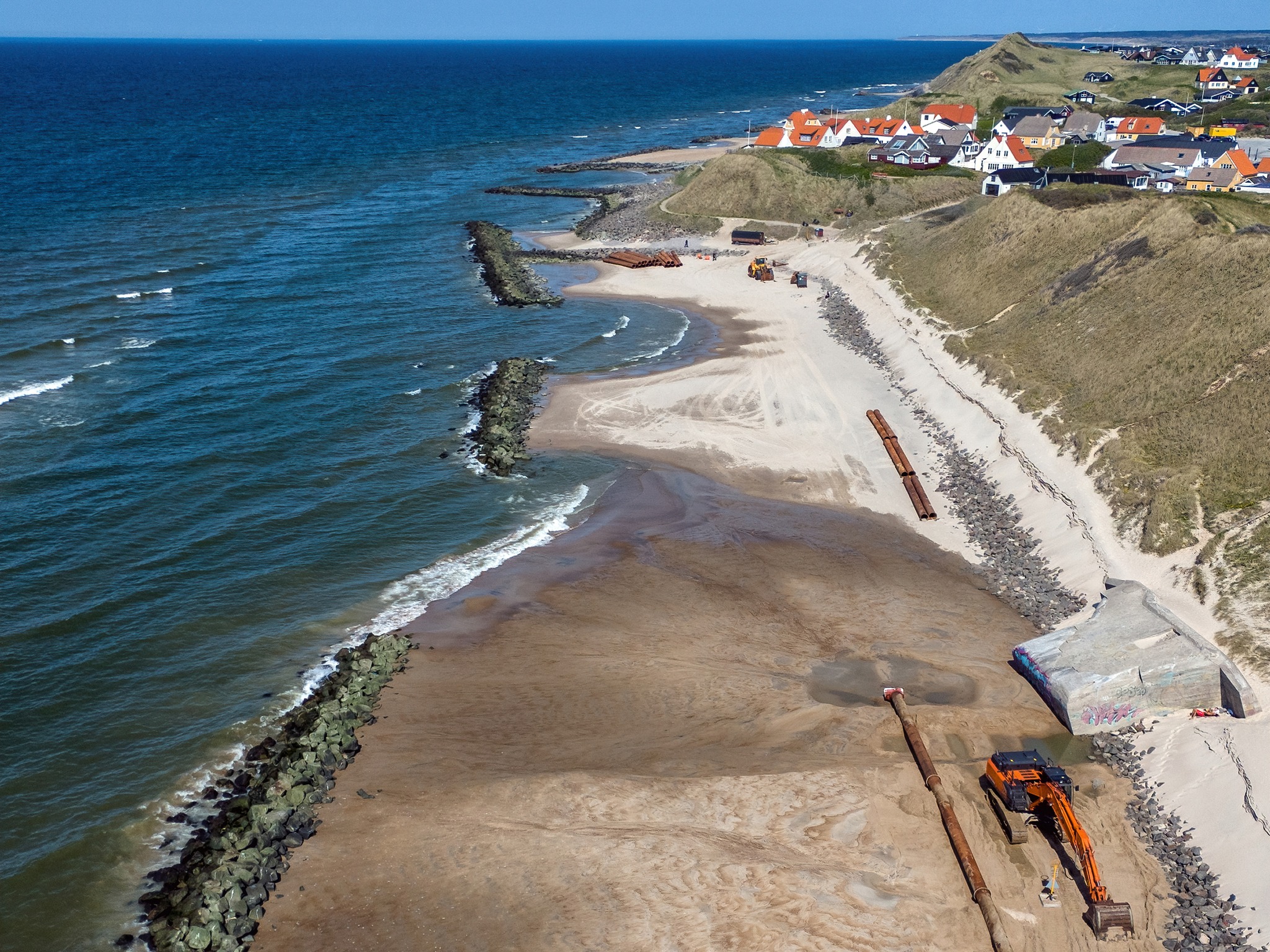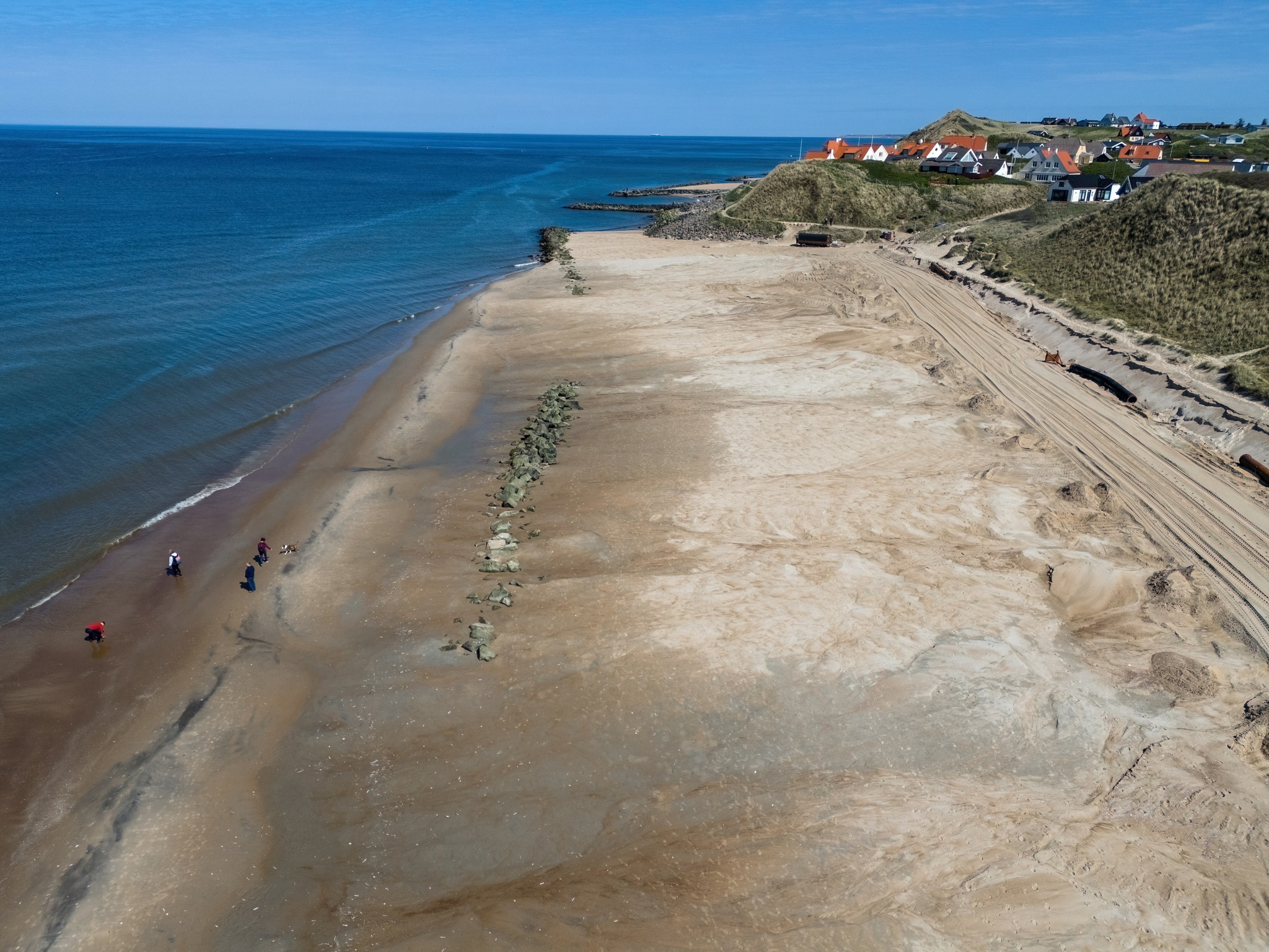 Som tidligere omtalt er Kystdirektoratet halvvejs med årets sandfodring i Lønstrup. På videoen ovenfor, som er filmet af dronefotograf Henning Larsen, ser man, hvordan sandfodringen nu foretages fra skibene Freja R og Balder R. Skibene henter sandet i et marint indvindingsområde omkring 25 kilometer vest for Lønstrup. På billederne nedenfor, som også er taget af Henning Larsen, ses stranden før og efter sandfodring ved Lønstrup.