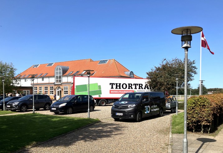 Lastbilen med det flotte udstyr lige fra køleskabe og store skærme til mindre borde kom fra virksomheden Holmris B8 med hovedsæde i det midtjyske.