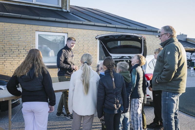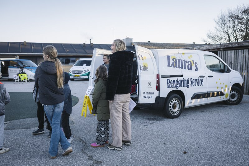 Ikke færre end 9 lokale virksomheder stillede med deres firmabil i skolegården, så eleverne i små hold kom rundt og fik et sanseligt og praksisnært indblik i de forskellige erhverv.