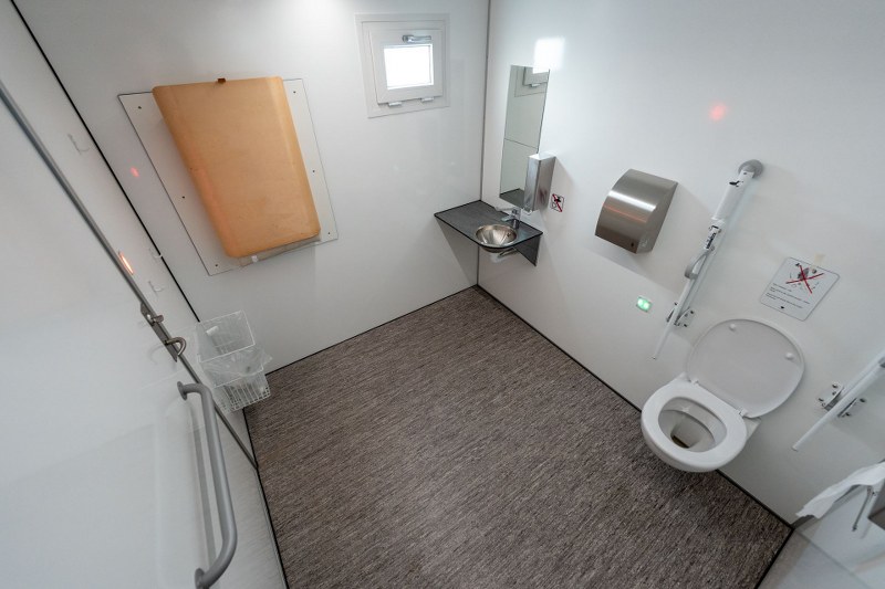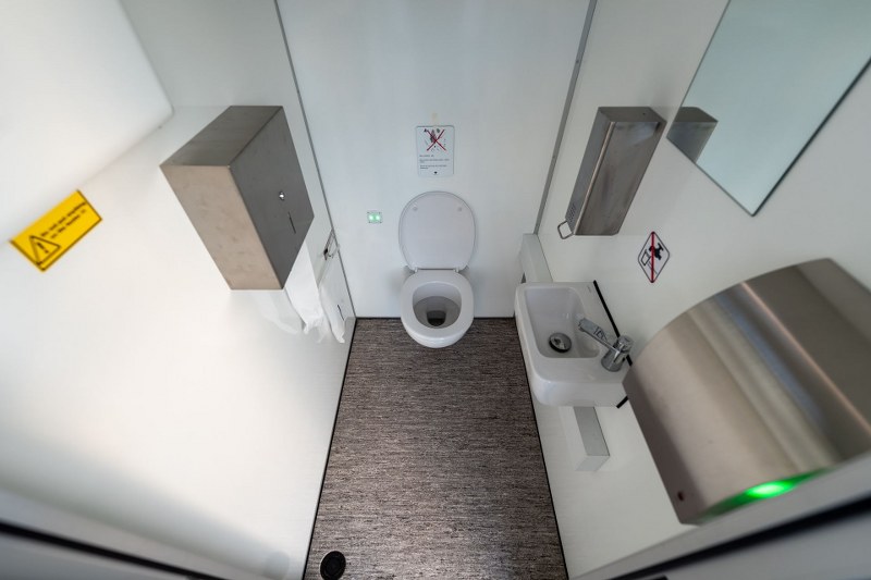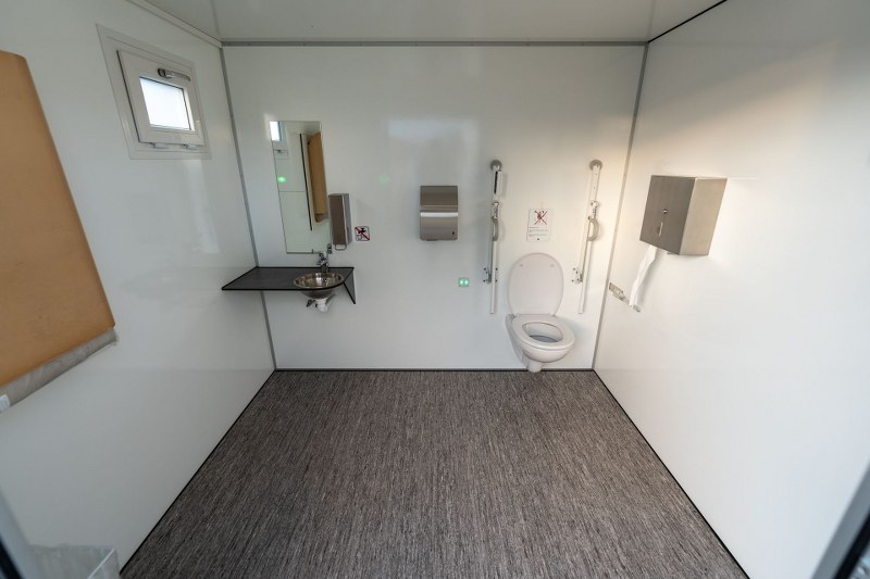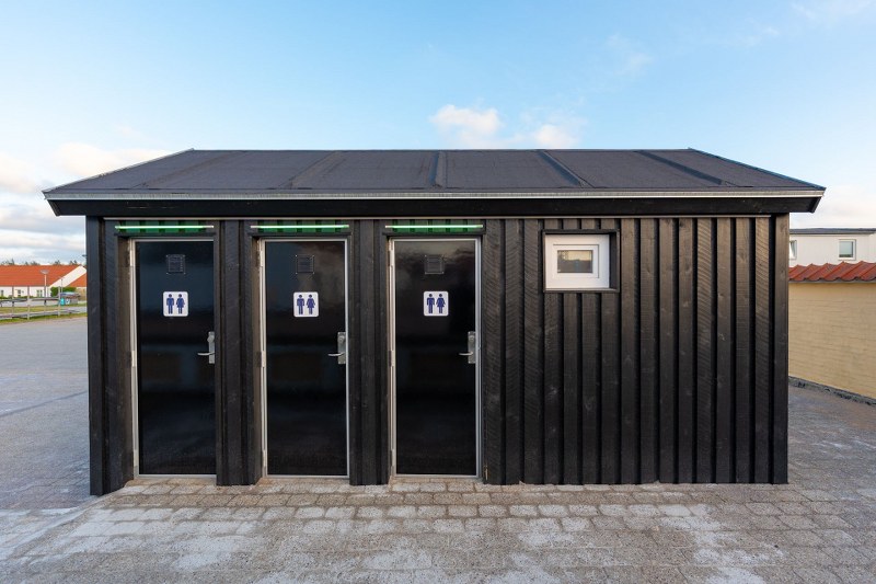 Ikke bare er bygningen flot og af samme type, som dem der allerede står ved parkeringspladsen på Tornby Strand og ved Nordsøen Fri Fagskole på Vestkajen i Hirtshals, men den er også yderst funktionel, udstyret som den er med fire almindelige toiletter plus et stort handicaptoilet.