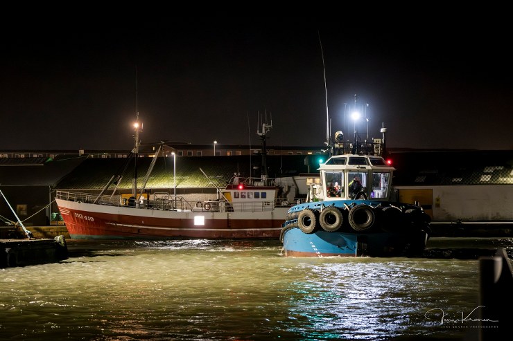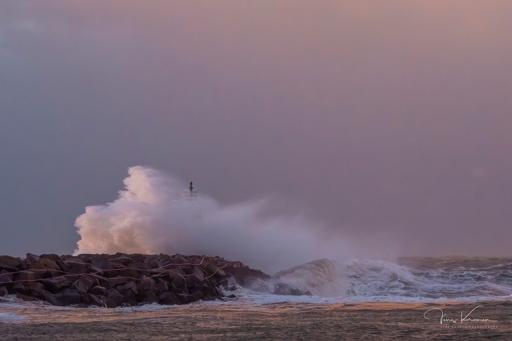Selv om vinden altså ikke blev så kraftig som først frygtet, blev der dog nok at se til torsdag aften, hvilket her kan ses dokumenteret af fotograf Jens Kranen, der brugte en del af sin torsdag aften på kajkanterne i Hirtshals.