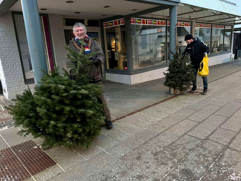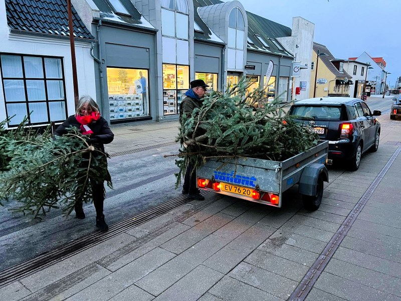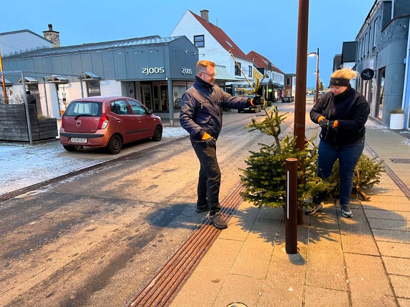 Friske medlemmer af Lions strammer op på juletræerne i Hirtshals