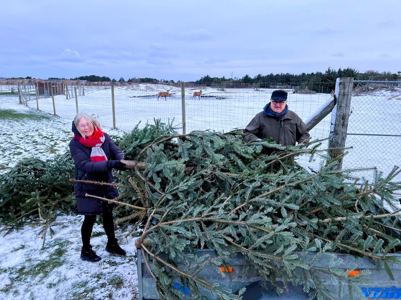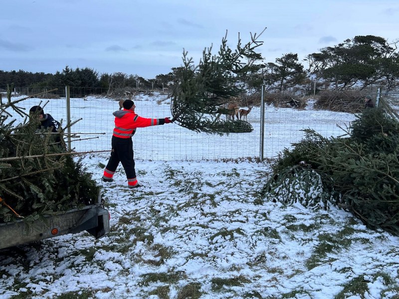 Denne lørdag tog frivillige fra den lokale afdeling af Lions, som også i starten af november havde opsat juletræerne på foranledning af   Hirtshals Handel & Erhverv  (HHE), nemlig traditionen tro tjansen med at pille granerne ned igen, hvorefter de på trailere bliver trillet ud til det sultne kronvildt i Fun-Park.