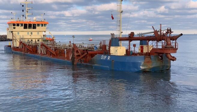 Coronakrisens nedlukning af mangt og meget både lokalt og globalt har givet minimal trafik for Color Line, Fjord Line og Smyril Line i landets ellers største færgehavn, hvilket giver lidt mere arbejdsro til Sif R, når det 77 meter lange fartøj i disse dage uddyber indsejlingen til Hirtshals Havn.