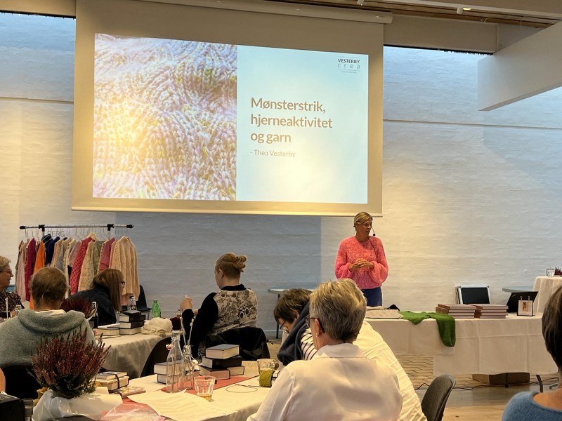 Derefter workshop nummer to med Thea Vesterby, hvor der blev lavet mønsterstrik og fortalt om, hvordan man laver udtagning og indtagning i mønster.
