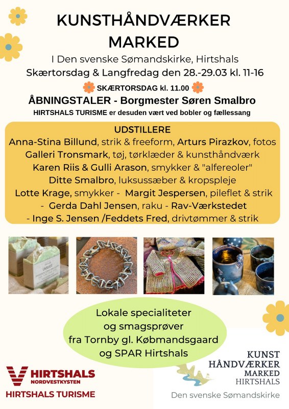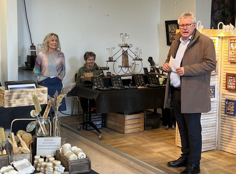 Afslutningsvis opfordrede borgmesteren de fremmødte til ikke bare at handle med de mange udstillere på kunsthåndværkermarkedet, men også at benytte sig af den flyer med forslag til såkaldt Art Crawl, som i påskedagene er en oplagt mulighed for hele familien i Hirtshals.