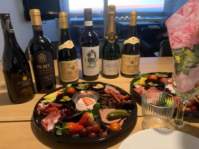 Lidt flere end et par hundrede mennesker fra blandt andet Bindslev, Tornby, Tversted, Hjørring og Hirtshals havde valgt denne fredag aften i skyggen af coronakrisen at sætte sig til bords foran skærmene med lækker tapas og seks udvalgte vine i selskab med Pia og René Ejstrup Larsen fra Slagter Winther og Spar.