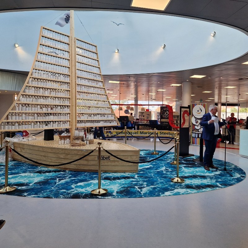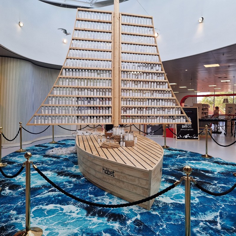 Udstillingen består af hele 510 flaskeposter skrevet af kommunens 7. klasser, der tidligere på året deltog i Mini Skills. Her gav eleverne deres bud på håndværkets rolle i fremtiden både for dem selv og for samfundet. Flaskeposterne er nu blevet samlet i et spektakulært skib midt i biblioteket, hvor alle kan opleve dem i hele oktober.