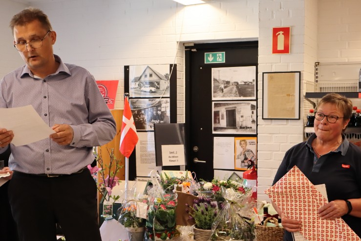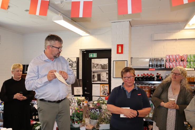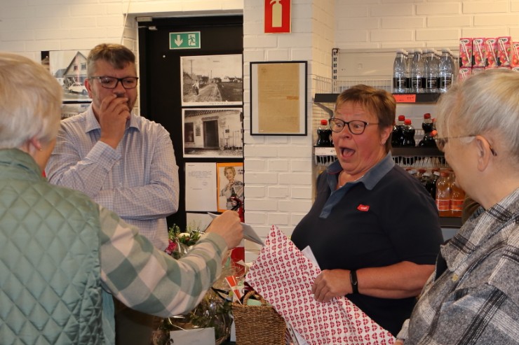 – I alle årene har du været et omdrejningspunkt i hele byen. Med dit gode humør og din evne til at lytte til alle, der kom i butikken, er det ikke underligt, at du er kendt som “Mor Karen”. Hans-Erik fremhævede også, hvordan mange af områdets unge har haft deres første fritidsjob i brugsen under Karens ledelse, og hvordan hun har været med til at forme dem til ansvarsfulde voksne, der stadig husker tiden i brugsen med glæde, og Hans-Erik Jensen roste Karens enorme arbejdsindsats og engagement.