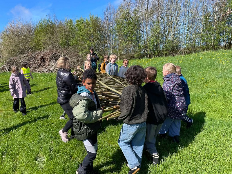 Torsdag var en flok friske elever fra 3. og 4 klasserne på Bindslev Skole derfor cyklet med deres lærere og en pædagog ud for at bidrage til naturplejen på et privat område ved lige præcis Skeen Møllevej.