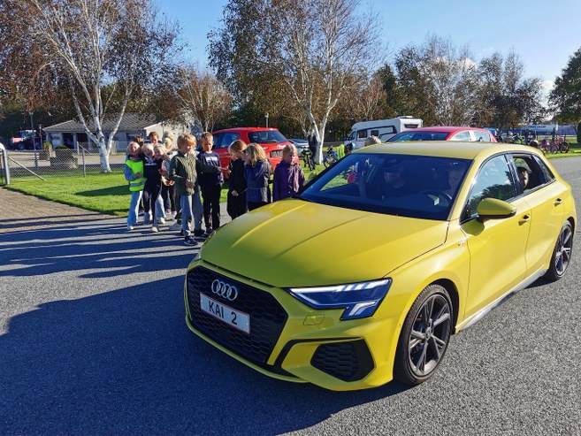 Med forældrenes tilladelse fik børnene lov til selv at køre i en fed Audi, inklusive slalomkørsel, dog med Frejas far Casper som en dygtig kørelærer i sædet ved siden af, hvor der også var et sæt pedaler – just in case. Alle børn, der nåede en tur bag rattet, var mega cool.