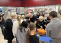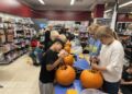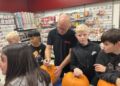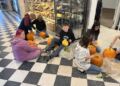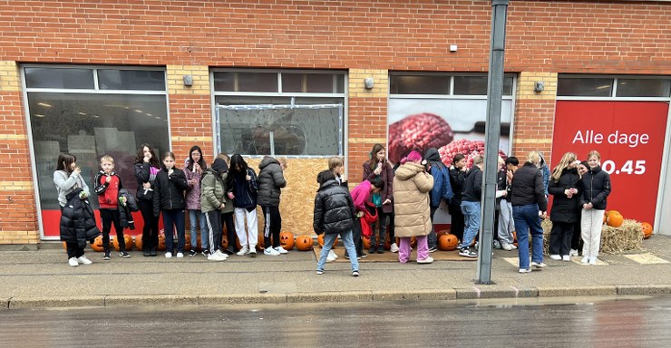 Alle elever blev mødt af Nete og Åse, som stod klar med kæmpestore og flotte græskarhoveder. Børnene skulle nemlig nu lave deres helt eget hoved, som resten af måneden frem til halloween skal pynte indgangen til SuperBrugsen.